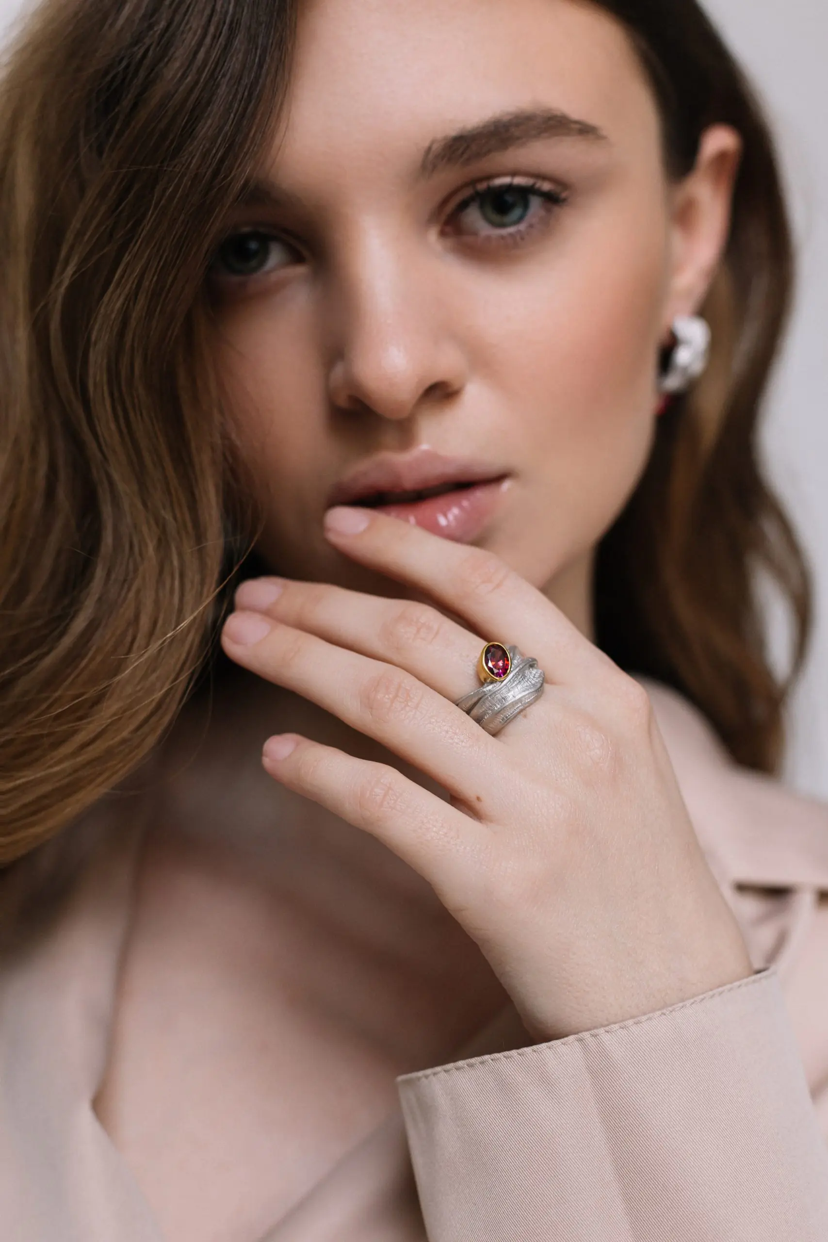 Представляем наше потрясающее серебряное кольцо Frap из коллекции Crumpled Silk, выполненное в виде складок роскошного фактурного шёлка, украшенное ослепительным фианитом. Замысловатая текстура добавляет глубины и объема, создавая потрясающий визуальный эффект, который обязательно привлечет внимание. Модель выполнена из серебра 925 пробы и великолепно само по себе, а также в комплекте с серьгами из одноименной линейки.Покрытие