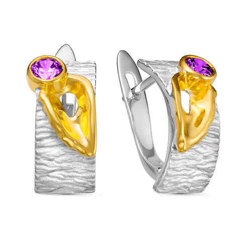 Маленькие, изящные серебряные серьги Golden Ear так и манят украсить собой образ! Идеальное сочетание натуральной текстуры дерева с потрясающими акцентами в виде сверкающих фианитов и изящных золотых ушек. Древесная фактура и прямоугольная форма визуально корректирует овал лица, подчеркивает нежность линий шеи. Английский замочек надежный и простой в использовании. Серьги украсят любую даму, будь она в вечернем платье или деловом костюме. Серьги Golden Ear выполнены из серебра 925 пробы и великолепны в качестве акцентных украшений или в комплекте с кольцом из одноименной серии.Покрытие