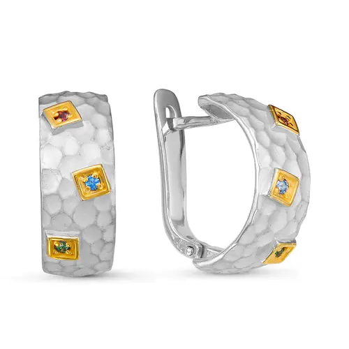 Миниатюрные серебряные серьги Play с уникальной мятой текстурой и ослепительным сочетанием разноцветных фианитов! Проработанное, но минималистичное, понятное, но совсем не банальное — идеальное базовое украшение! Яркие и роскошные серьги Play идеально впишутся в вечерний и повседневный образ. А если вам захочется добавить ещё деталей, то определённо стоит присмотреться к кольцу из этой же серии. Великолепный экземпляр современного направления в ювелирном искусстве из серебра высшей пробы!Покрытие